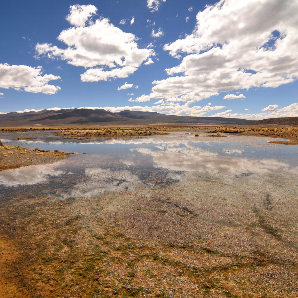 La reserva es conocida por sus impresionantes paisajes volcánicos. Las lagunas Salinas, con sus aguas cristalinas, reflejan el cielo y las montañas circundantes. El volcán Chachani, añade un elemento dramático al paisaje, atrayendo a fotógrafos y aventureros por igual.
